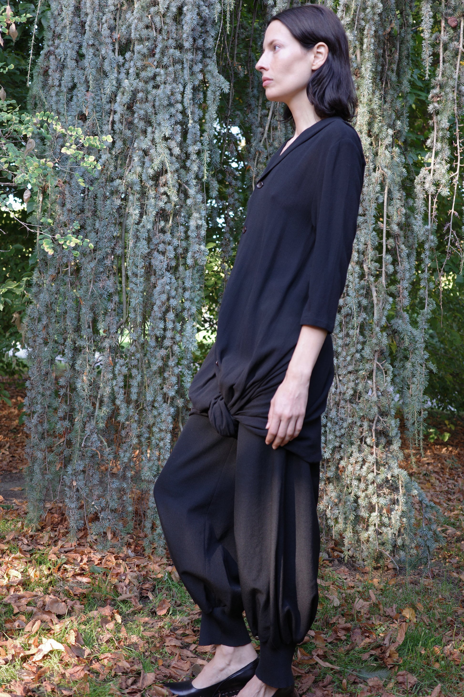 This vintage black tunic by Yohji Yamamoto embodies the designer’s sculptural minimalism. Crafted in Japan from wool, its distinctive knit offers natural stretch.